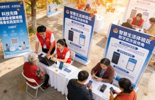 此次服务在原有电脑义诊基础上,特别增设“智慧生活体验区”和“数字反诈宣传角”。志愿者们不仅帮助解决电脑故障、手机卡顿等常规问题,还现场演示智能家居设备联动、线上医疗挂号等数字化生活场景。在反诈宣传角,同学们通过真实案例解析,帮助老年人识别网络陷阱,安装国家反诈中心APP,筑牢网络安全防线。